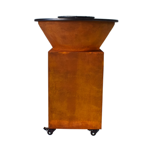 Hoogwaardig keramiek en massief cortenstaal voor maximale duurzaamheid.